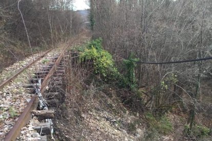 Los desprendimientos, especialmente en las inmediaciones de Toreno y de Corbón del Sil (Palacios del Sil), y la erosión del agua en el puente del embalse de Las Rozas, a cinco kilómetros de Villablino, son las mayores amenazas para el trazando del antiguo ferrocarril entre Ponferrada y Laciana, hoy reducido hasta Cubillos, según advirtió ayer la asociación Cultural Ferroviaria Berciana (CFB) tras realizar una inspección al trazado que une las dos comarcas.