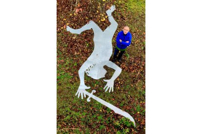 El escultor Juan José Albares coloca una nueva figura en el ‘jardín mitológico’ que empezó a crear en 1996 en los paisajes de su localidad