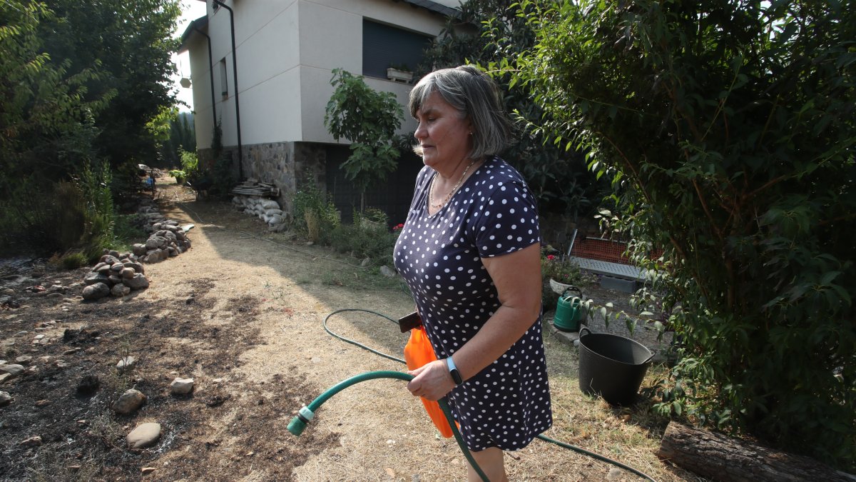 Maribel es la esposa del alcalde de Carucedo, Alfonso Fernandez. A su lado, el teniente de alcalde, Carlos Gómez, regresa de Las Médulas con el coche de Protección Civil y hace balance; El Aula Arqueológica de la Junta de Castilla y León, cerrada desde la crisis del Instituto de Estudios Bercianos hace dos años, devorada por completo por el fuego. Y media docena de casas y un pajar. Gómez cuenta que un vecino se quemó un brazo al intentar apagar su vivienda. Pero es el relato de Maribel y el de su vecina Maruja, que también ha salvado su casa por poco, el que estremece. "Vimos venir una lengua de fuego. Mi marido decía que era de 20 metros de altura. No habíamos visto nada así. Y nos evacuaron". Maribel dio por perdida su casa y se fue a Vilela, donde tiene otra vivienda, con dos personas mayores a su carga.