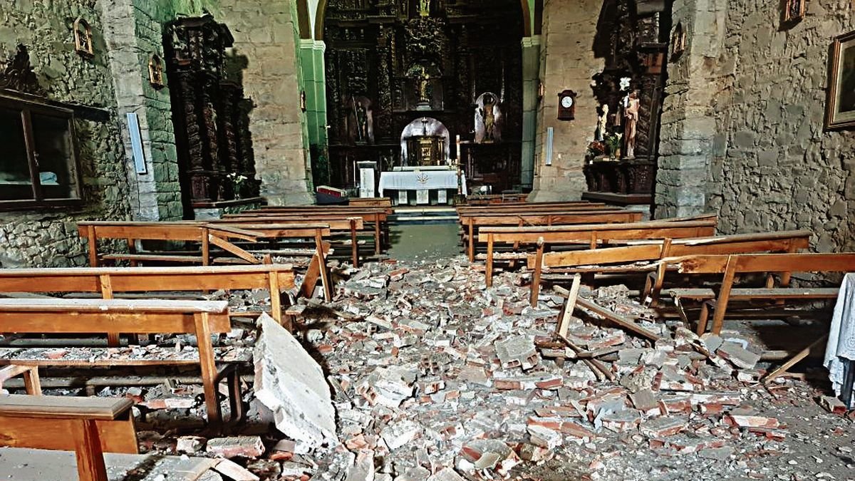 Las diferentes fases constructivas a las que fue sometido el templo a lo largo de la historia son las causantes de una enfermedad invisible hasta que la bóveda impactó contra el suelo. La última intervención en el edificio se hizo hace menos de una década; pero no en el tejado. Se actuó en la espadaña, que se estaba separando de la iglesia, vencía hacia un lado. Eso se corrigió. «La torre prácticamente se desmontó y se reconstruyó entera y ya, entonces, se vio que había problemas con el tejado. Se arregló y se solucionó la humedad que salía de la torre, pero esto que ha ocurrido ahora no tiene nada que ver, porque es en el tramo siguiente. Es algo que venía de atrás y la gotera física no se veía», relata el ecónomo.