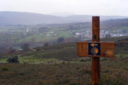 Señalización del 'Camino olvidado', que discurre en su tramo por el Bierzo Alto entre las localidades leonesas de Campo de Santiago y Villafranca del Bierzo. CÉSAR SÁNCHEZ