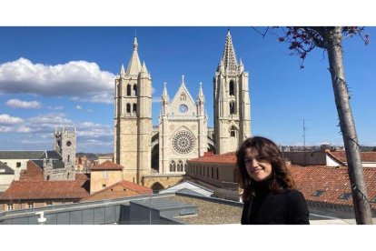 La investigadora leonesa María Fernández Raga, con la Catedral de fondo . DL