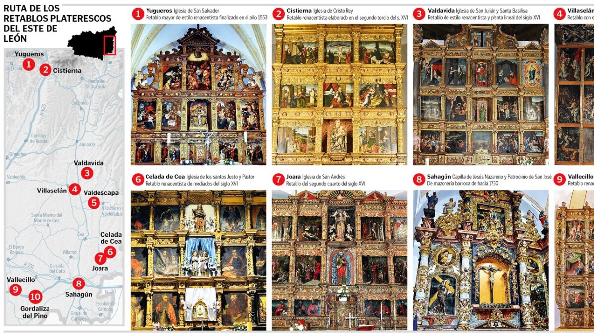 La ruta de retablos del Este de León comienza esta semana con el propósito de conjurar el desierto demográfico que se cierne sobre uno de los espacios de la provincia con mayor ratio de despoblación. Para paliarlo se ha puesto en marcha un recorrido por diez joyas del Renacimiento leonés