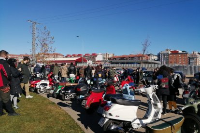 La concentración de Scooters, vistoso y ruidoso apartado del Purple Weekend, mezclado con una cola de ciudadanos esperando para vacunarse. Más los puestos del mercadillo, discos y libros, en el interior, con los primeros visitantes. Y la puntual prueba de sonido de los grupos de hoy, con Gerardo Villalba, Groucho, a los mandos hicieron del Palacio de Exposiciones un auténtico multiusos. Las vespas, lambrettas y similares, iniciaron su recorrido urbano y el alfoz, y, como es sana costumbre, deberá de acabar con un buen cocido.