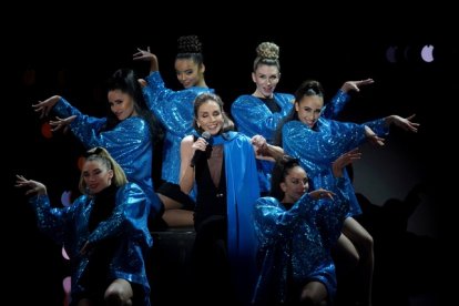 VALLADOLID, 10/02/2024.- Las cantantes María José Llergo, India Martínez y Niña Pastori actúan durante la ceremonia de entrega de la 38 edición de los Premios Goya celebrada este sábado en Valladolid. EFE/Chema Moya