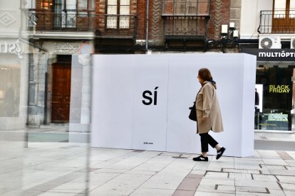 'Imagine' el tema escrito por John Lennon que se convirtió en un himno por la paz, es uno de los lemas elegidos por su viuda, Yoko Ono, para instalar en León. El arco de la cárcel o Puerta Castillo, el principio de Papalaguinda, la estación de tren, Eras de Renueva y Alcázar de Toledo son los cinco enclaves que albergan los mensajes de la polifacética artista de 91 años: 'Imagina la paz', 'Sí', 'Respira', 'Vuela' y 'Recuerda'. Yoko Ono no estará presente en la exposición que le dedica el Musac y que abre sus puertas el sábado. Bajo el título Insound / Instructure, será la exposición más extensa de Yoko Ono en España en la última década. Una muestra que ocupará más de 1.700 metros cuadrados. La viuda de John Lennon es una de las artistas más cotizadas, activista por la paz y comprometida feminista. Su nombre siempre es apostar sobre seguro para cualquier museo. Como dijo Lennon: «Yoko Ono es la más famosa desconocida artista del mundo, todos saben su nombre, pero nadie sabe qué hace». De ella podrán verse en León obras tan emblemáticas como Doors o Parts of Lighthouse, ejes centrales de esta antológica que recorrerá siete décadas de la producción de Ono.