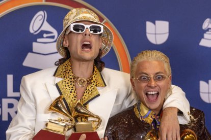 Los argentinos Ca7riel & Paco Amoroso, los segundos más nominados de la noche, se hicieron de cinco de los diez gramófonos a los que aspiraban en categorías como mejor canción alternativa, mejor canción pop o mejor álbum de música alternativa.