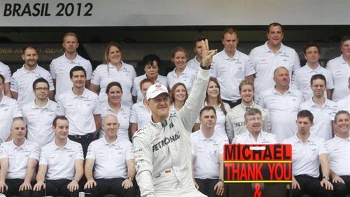 El piloto alemán Michael Schumacher (Mercedes) ha disputado este domingo en Interlagos el último Gran Premio de Fórmula 1 de su carrera, tres años después de haber retornado al 'gran circo', donde no pudo demostrar el brillo de antaño y donde su actual escudería ya le había buscado recambio en la figura de Lewis Hamilton.