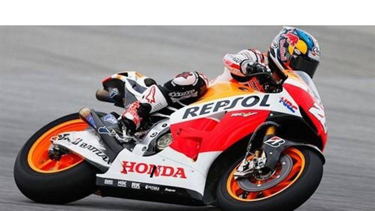 Al contrario que en la última visita a Sepang, Lorenzo no pudo acercarse demasiado a Pedrosa, quedándose a más de 200 milésimas, mientras que Márquez, que sufrió una caída sin consecuencias, completó el 'Top 3', a 362, y la sorpresa fue el rendimiento del alemán Stefan Bradl (Honda), que se coló por delante de Valentino Rossi (Yamaha), que no pudo enjugar el casi medio segundo con la Honda.