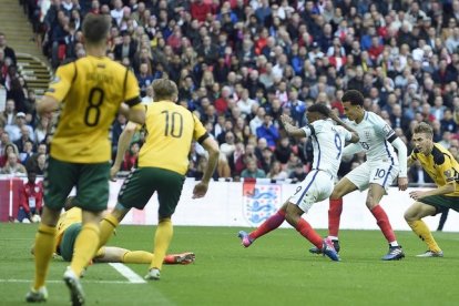 Defoe, que volvía a la selección inglesa después de una ausencia de más de tres años, abrió el marcador en la victoria de Inglaterra sobre Lituania en Wembley. El delantero del Sunderland, de 34 años, remató de primeras para embocar a pase de Sterling (m. 22). El equipo báltico, inofensivo durante 40 minutos, se encontró con la oportunidad de empatar a causa de un mal entendimiento entre Harty Stones, pero el portero reaccionó a tiempo para evitar sobre la linea el tanto de Slivka.