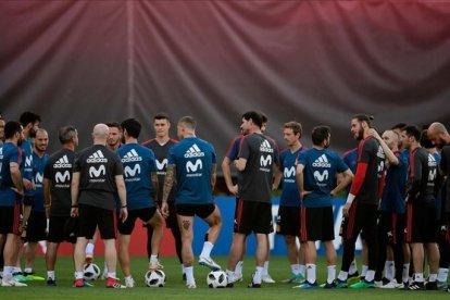 Hierro dirige el entrenamiento en la academia de Krasnodar antes del duelo con Rusia.