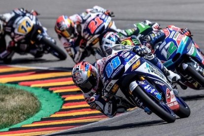 El español Jorge Martin (Honda) lidera el grupo de salida de Moto3 en el GP de Alemania. / EFE / FILIP SINGER