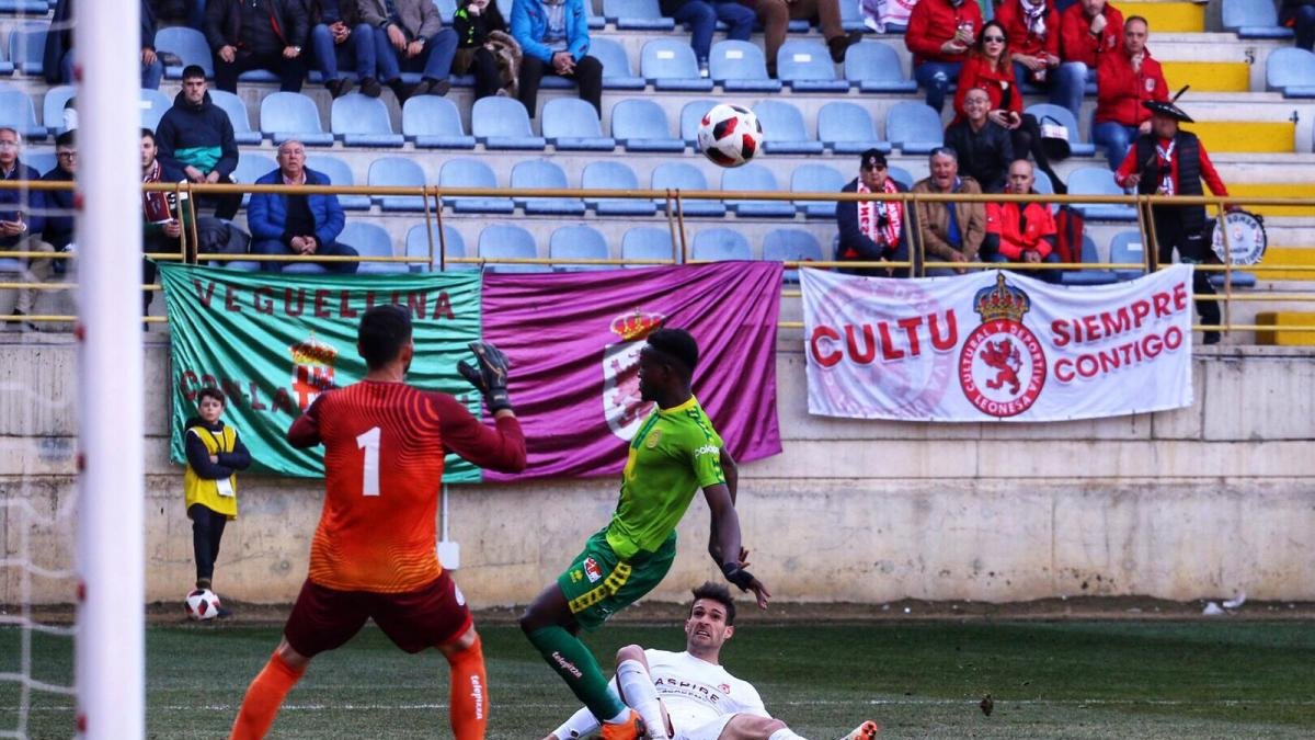 Minuto 25: Dioni no llega un balón largo en el ataque del equipo leonés.