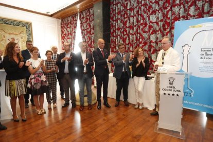 Deportes Entrega de trofeos del Torneo Magistral de Ajedrez Ciudad de León Facebook Twitter Whatsapp Whatsapp Telegram Copiar enlace Comentarios Publicado por FOTOS: JES?S F. SALVADORES León Creado: 08.07.2019 | 16:29 Actualizado: 05.08.2019 | 16:31 En: León Ajedrez Ver comentarios Debes habilitar JavaScript en tu navegador para poder ver los comentarios.