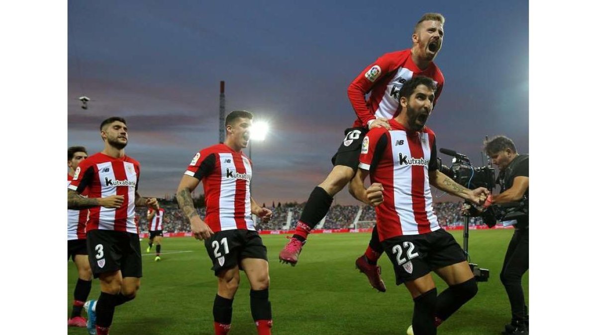 Asomó entonces el Athletic y en uno de sus primeros balones el área de la segunda mitad, arañó un dudoso penalti por derribo de Bustinza sobre Larra. Le pegó Raúl García fuerte y arriba para transformar el primero.