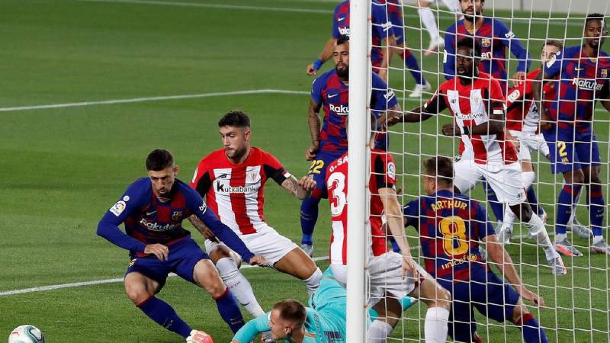 La segunda parte corrió por los mismos derroteros hasta que una jugada que aprovechó Rakitic para batir a Unai Simón posibilitó el triunfo del Barcelona. Fue en el minuto 70 y a partir de ahí los de Setién se mostraron más consistentes aunque siempre con la irregularidad que le impidió sacar un mayor provecho y no tener que esperar a los minutos finales para ver como los tres puntos se quedaban en el Camp Nou y con ello sus opciones de mantener una jornada más el pulso por el cetro liguero con el Real Madrid.