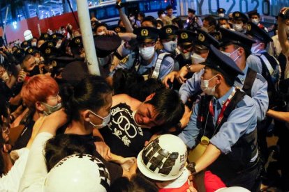 Afuera del Estadio, rodeado por un perímetro de seguridad de vallas y un despliegue de miles de policías y tropas niponas, los japoneses seguían la celebración con sentimientos encontrados.