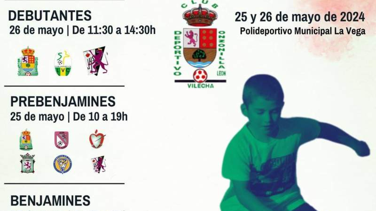 El Polideportivo de la Era de Vilecha acogerá el Torneo de Fútbol 7 Onzonilla. El torneo está organizado por el Club Deportivo Onzonilla. Participarán niños de 4 a 12 años. El sábado 25 de mayo será el turno para las categorías prebenjamín y benjamín. El 26, debutantes y alevines. | dl