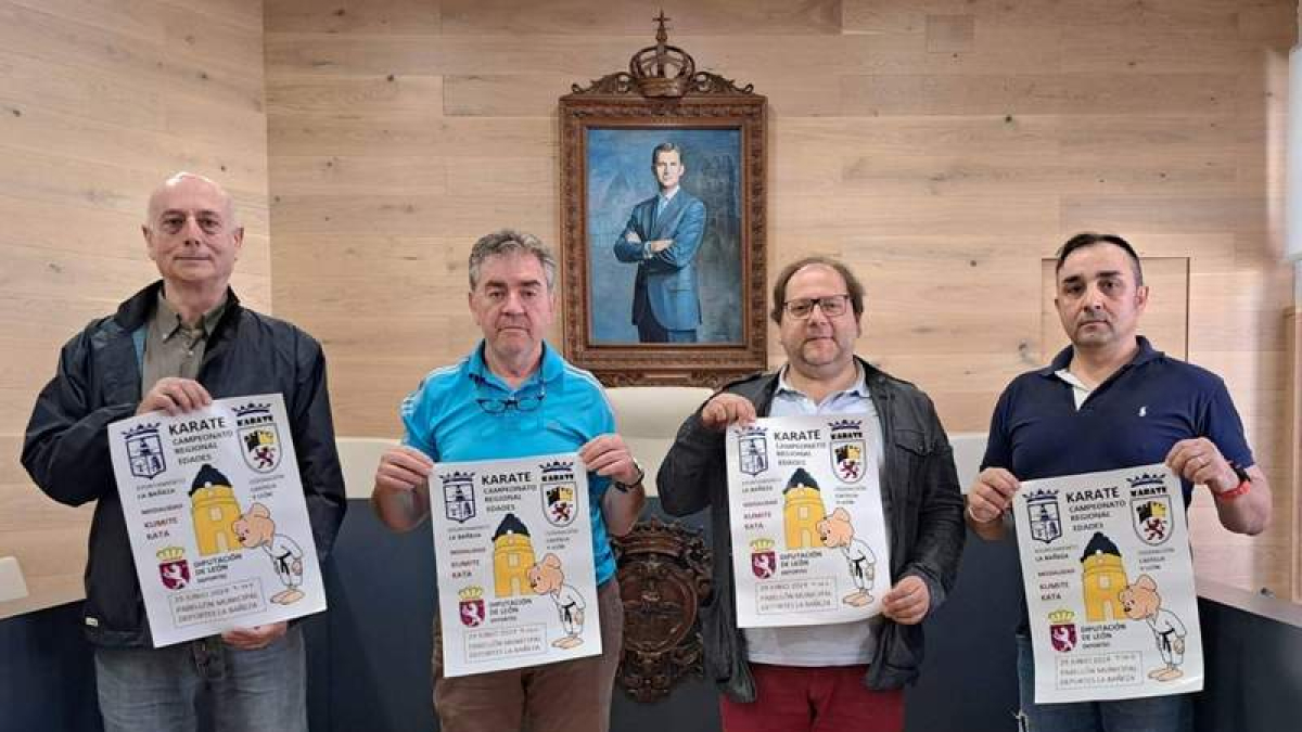 El Ayuntamiento de La Bañeza presentó este viernes el Campeonato de Karate por Edades de Castilla y León, que tendrá lugar el próximo día 29 de este mes de junio, en el polideportivo de la ciudad. Se trata de una competición que es un orgullo para La Bañeza, según destacó su alcalde Javier Carrera. | DL