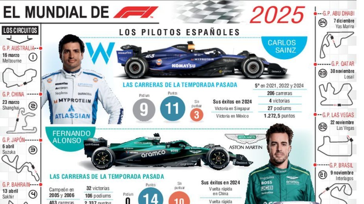 Aunque las miradas en lo deportivo se posarán sobre los dos campeones de constructores y pilotos de 2024, mediáticamente el foco estará en el muro de Ferrari. El debut de Lewis Hamilton con la Scuderia en un gran premio ha levantado una expectación que ya hace salivar a los productores de Netflix que estarán grabando para la siguiente temporada de su serie inspirada en hechos reales. El rendimiento del SF25 es una de las grandes incógnitas de este comienzo del año, no solo por el debut de Hamilton sino por ver cómo Charles Leclerc responde al reto de tener al heptacampeón a su lado. Una de las grandes incógnitas a despejar en este 2025 es la del liderato dentro de Ferrari: ¿el Predestinato o la leyenda recién llegada? Otra de las dudas que quedan por resolver está, precisamente, en el piloto que tuvo que salir de Ferrari para hacer sitio a Hamilton. Carlos Sainz parece haberse adaptado razonablemente bien a William.