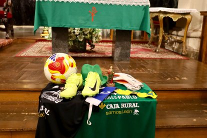 Ofrenda a la patrona Santa Marta por parte del Atlético Astorga para que proteja al equipo