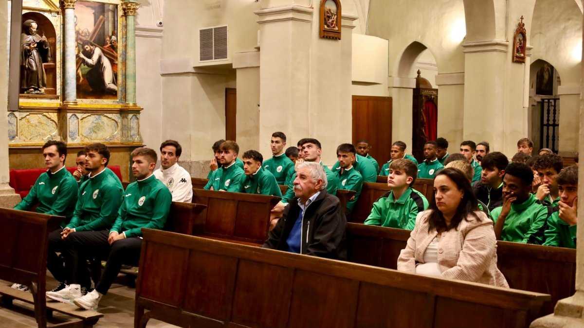 Plantilla, cuerpo técnico y directiva del Atlético Astorga junto al equipo juvenil realizaron ayer la tradicional ofrenda a Santa Marta, patrona de la ciudad. Todos pidieron por una buena temporada y le agradecieron que siempre esté a su lado. La ofrenda llegaba tras un día histórico para el club. El domingo sumaba los primeros puntos en la recién estrenada categoría. Alegría, ilusión y mucho ánimo fueron el equipaje de todos ante Santa Marta.