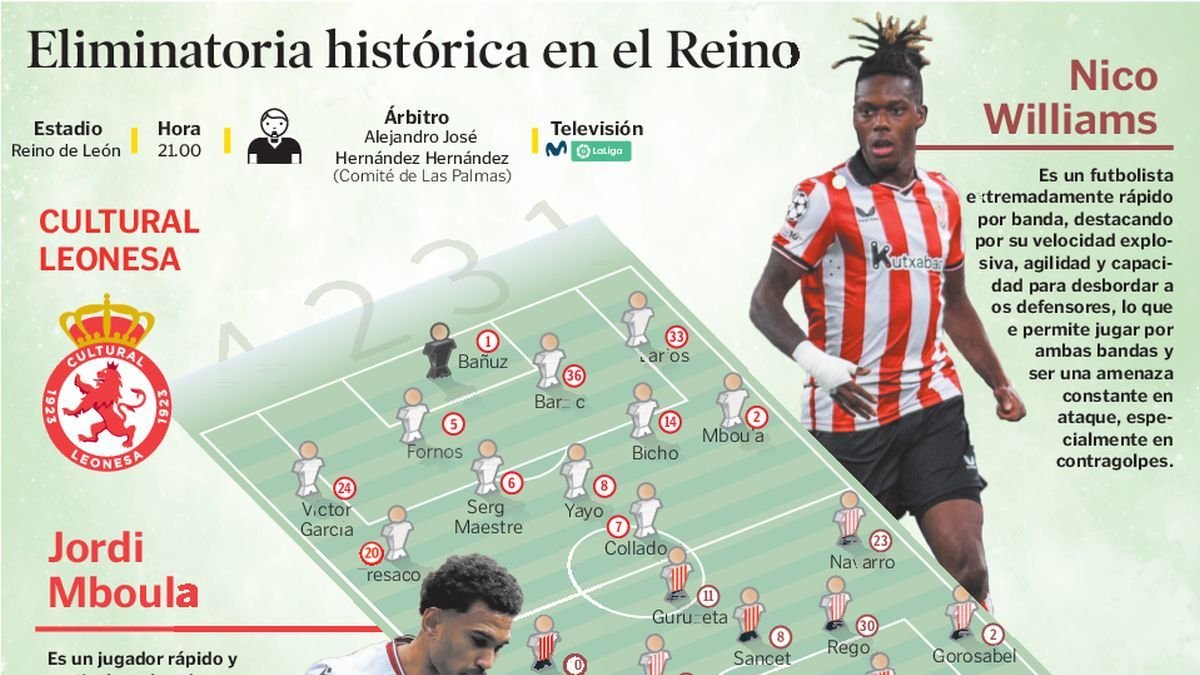 En esta ocasión, aún manteniendo el favoritismo previo dada su superior categoría y su querencia por una competición que adora, el Athletic Club llega a León en un momento delicado, sin acabar de cogerle el pulso como quiere a la temporada y después de un tremendo varapalo en la Supercopa (5-0) ante el que se proclamó campeón del torneo, el FC Barcelona. Para esta cita copera, Valverde deberá decidir una alineación entre una convocatoria formada por Unai Simón, Alex Padilla, Andoni Gorosabel, Dani Vivian, Aitor Paredes, Oihan Sancet, Iñaki Williams, Nico Williams, Gorka Guruzeta, Jesús Areso, Iñigo Lekue, Yuri Berchiche, Iñigo Ruiz de Galarreta, Mikel Jauregizar, Adama Boiro, Unai Gómez, Nico Serrano, Robert Navarro, Urko Izeta, Alejandro Rego, Selton Sánchez e Iker Monreal. El regreso de Yuri Berchiche y la baja de Álex Berenguer son las principales novedades en la lista de 22 jugadores. Son también bajas Aymeric Laporte, al que se espera en breve recuperado de la lesión muscular que le ha impedido jugar los últimos partidos, y las de larga duración, las de los lesionados Maroan Sannadi, Beñat Prados, Unai Egiluz, además del sancionado Yeray Álvarez.