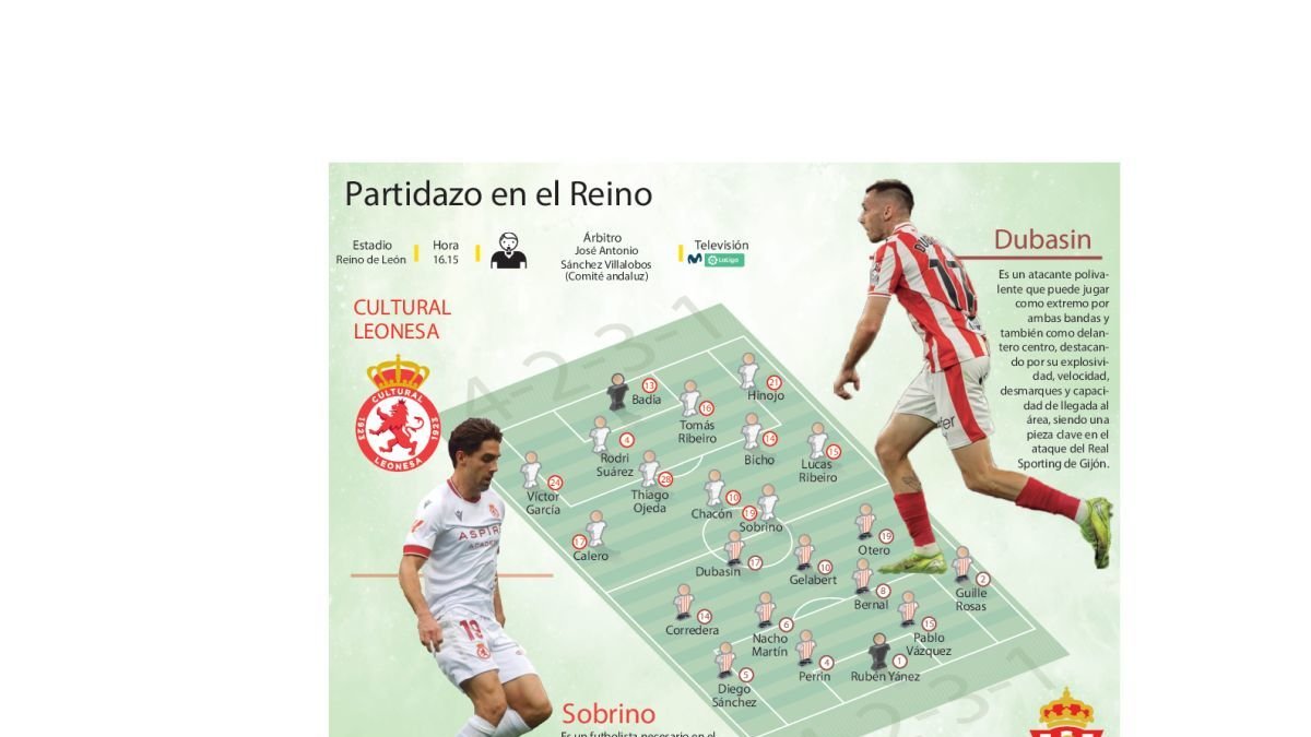 Partidazo en el Reino de León, a partir de las 16.15 horas. La Cultural Leonesa recibe este sábado al Real Sporting de Gijón, que contará con el apoyo de casi un millar de aficionados en las gradas y otros tantos, o incluso más, en la zona del casco antiguo de la ciudad leonesa, en lo que será una fiesta entre dos aficiones que siempre se han caracterizado por su hermanamiento, pese a que la Comisión Permanente de la Comisión Estatal contra la Violencia, el Racismo, la Xenofobia y la Intolerancia en el Deporte ha acordado la declaración de alto riesgo de este duelo leonés-astur.