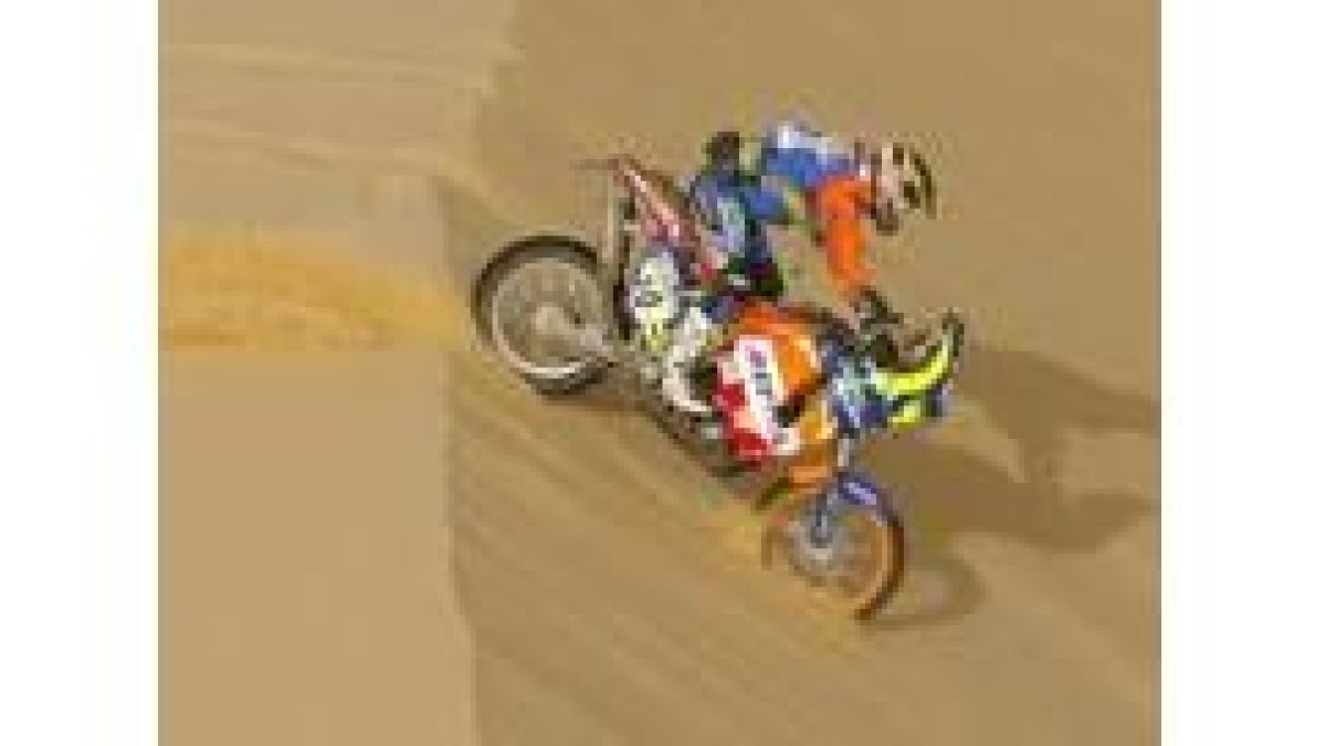 Los supervivientes disfrutan hoy en Siwa de un merecido día de descanso. La etapa de ayer, que significó la despedida de Libia y la entrada en Egipto, incluyó una especial íntegramente disputada sobre arena y salpicada de algunos ergs y pasos de dunas complicados. El francés Stephane Peterhansel (Mitsubishi) se adjudicó la victoria de etapa, por delante del también francés Luc Alphand (BMW), que entró en la meta de Siwa apenas a un minuto y medio de su compatriota. El japonés Hiroshi Masuoka (Mitsubishi) entró a continuación. En la general, Peterhansel se reafirma un poco más en cabeza, con 16:32 de ventaja sobre Masuoka, mientras el belga Gregoire de Mevius (BMW) continúa un día más en tercera posición, a más de hora y media del líder. El mejor español sigue siendo José María Serviá (Schlesser-Ford), seguido de José Luis Monterde, en tanto que Jean Pierre Strugo (Mercedes) se mantiene al frente de la clasificación reservada a los T1. Hoy los participantes que todavía continúan en carrera disfrutarán de la única jornada de descanso de este Dakar. Meoni se recupera En motos, Meoni, vencedor del año pasado, aventajó al francés Richard Sainct (KTM) por 9:33, y al también galo Cyril Despres (KTM) por 11:17. El español Marc Coma (KTM) fue quinto, repitiendo así su resultado del sábado. Víctima de un problema mecánico en la etapa de anteayer, el italiano Meoni es tercero en la general a 28:01 de Sainct, mientras que Despres marcha segundo a 12:47 de Sainct. Coma ya es noveno en la general, a dos horas de Sainct. Destacable fue el accidente sufrido por una de las dos únicas motoristas que participan en el Dakar, la británica Patsy Quick, quien se cayó de la moto y sufrió una lesión grave en el bazo, por la que tendrá que someterse a una operación para solucionar los problemas derivados del accidente.