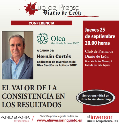 Hernán Cortés, codirector de Inversiones de Olea Gestión de Activos SGIIC, dará una conferencia en el Club de Prensa de Diario de León el jueves 25 de septiembre a las 20.00 horas