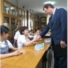 El consejero de Fomento fue agasajado ayer por los alumnos de La Inmaculada, a los que hace dos meses recibió en su despacho en Valladolid