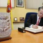 Zapatero, ministros y secretarios de Estado ocupan las primeras páginas del Libro de Honor del Ayuntamiento. La última rúbrica, la de Camacho. Después vino un tentempié y la visita a las obras