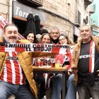 Las aficiones de la Cultural y del Sporting de Gijón viven un día de fiesta por el casco antiguo de la ciudad antes del duelo leonés-astur
