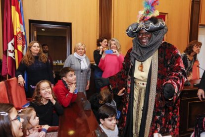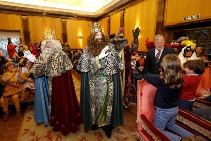 Antes de subirse en sus respectivas carrozas, los Reyes Magos han sido recibidos por el alcalde de León, Antonio Silván, en el salón de Plenos del antiguo Ayuntamiento de San Marcelo, que se encontraba abarrotado de niños que querían ver a los Magos de Oriente.