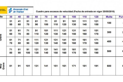 Aquí te dejamos una tabla con los límites de velocidad que no deberás exceder, las multas correspondientes a esa infracción y el número de puntos que perderías en el caso de incumplir la ley.
