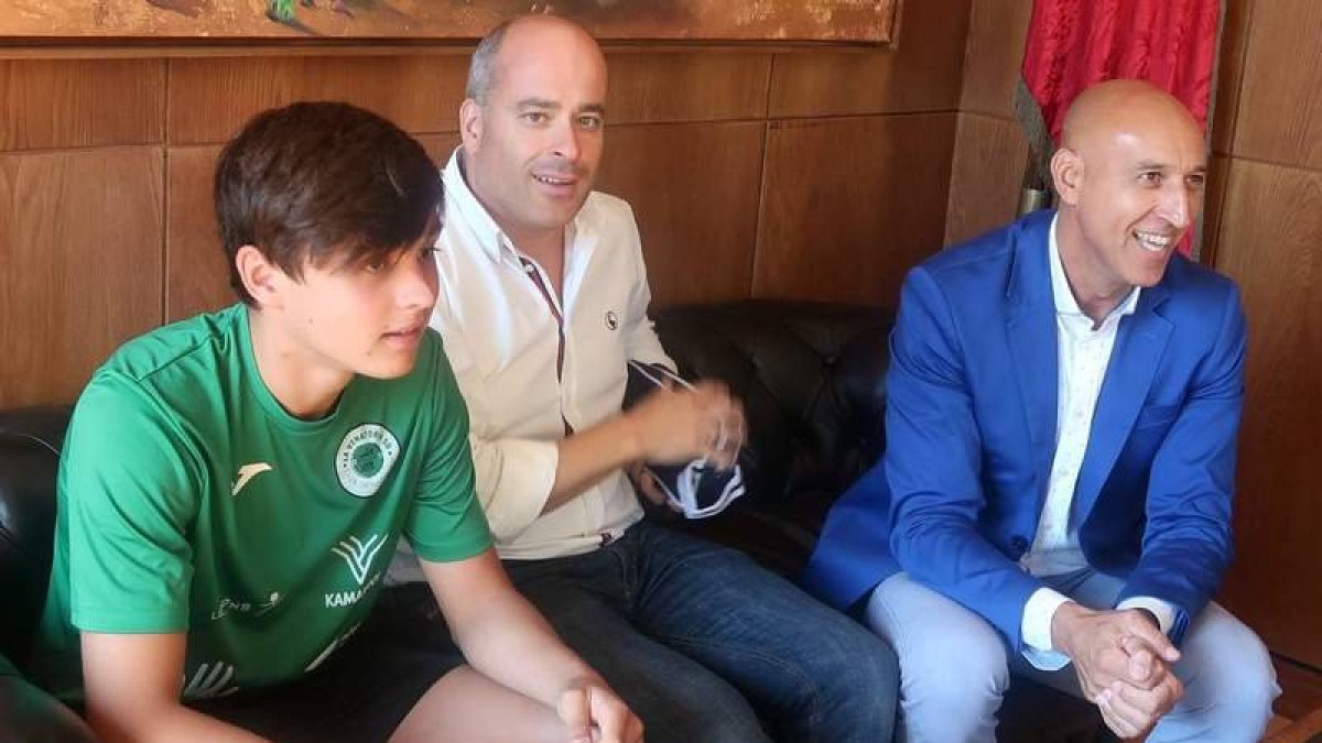 El alcalde de León, José Antonio Diez, recibió a Isaac Mao y Tomás Moreno, dos nadadores del equipo de La Venatoria que han logrado triunfos deportivos en los últimos meses. El policía leonés Isaac Mao obtuvo siete medallas en el Campeonato del Mundo de Policías y Bomberos celebrado en la ciudad china de Chengdu. Moreno logró bronce en la modalidad de 800 metros libres en el Campeonato Infantil de España de Natación. | dl
