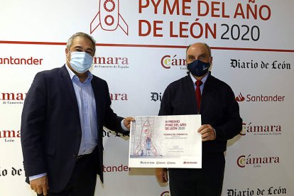 La sede central de Banco Santander en la capital leonesa acogió la entrega de galardones del premio Pyme del Año 2020 que convoca anualmente la entidad bancaria, con Diario de León y la colaboración de la Cámara de Comercio. El premio alcanza la cuarta edición y persigue el objetivo de dar visibilidad y reconocer la labor de las pequeñas y medianas empresas como generadoras de riqueza y creadoras de empleo en el desempeño de su labor diaria.