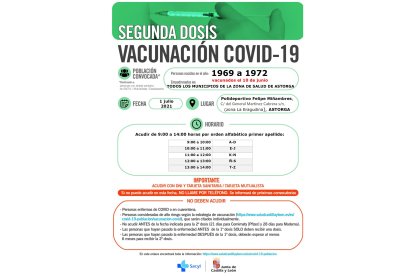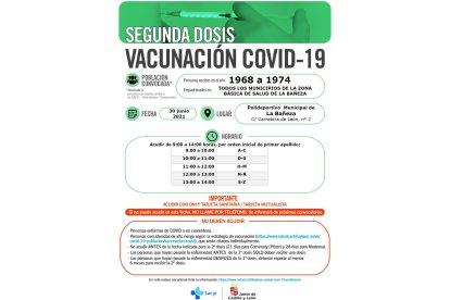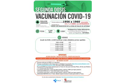 La Gerencia Regional de Salud (Sacyl) ha llamado este viernes a vacunarse frente a la Covid-19 con la segunda dosis de AstraZeneca en varios puntos de la provincia.
