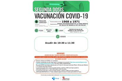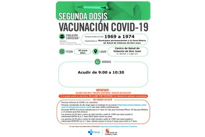 Asimismo, Sacyl ha programado jornadas de vacunación en Mansilla de las Mulas (30 de junio para los nacidos de 1968 a 1971, Valencia de Don Juan (30 de junio para los nacidos de 1969 a 1974) y Villamanín de la Tercia (2 de julio para los nacidos de 1956 a 1960 que el 9 de abril recibieron la primera).