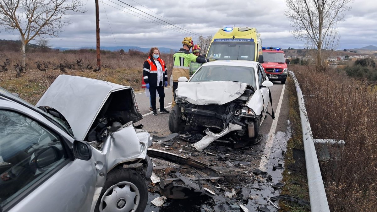 Rescatan a dos conductores heridos en un choque frontal en la carretera de Magaz a Cacabelos