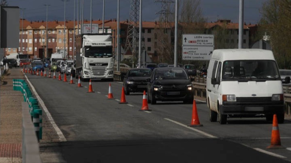 Cientos de coches intentaban salir del atasco provocado por el cierre de uno de los carriles de esta transitada vía, una de las arterias que circunvala la capital leonesa, y la ejecución de obras entre los mencionados puntos.