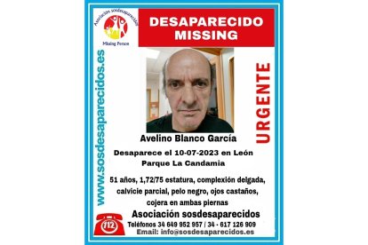 Es una persona vulnerable. Tiene 51 años y, según la alerta que activó SOS Desaparecidos en su perfil de twitter, mide entre 1,72 y 1,75 metros, es de complexión delgada, está calvo por la parte de arriba de la cabeza, su pelo es negro, los ojos castaños y presenta una cojera en ambas piernas.