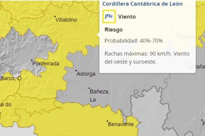 León puede registrar este martes rachas de viento de hasta 90 kilómetros por hora , según prevé la Agencia Estatal de Meteorología, que ha activado la alerta amarilla por este fenómeno desde las seis de la tarde hasta las 23.59 horas.