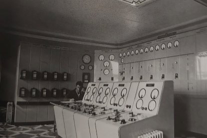 Panel de control de la central eléctrica de Mora de Luna. La fotografía fue tomada en 1956.