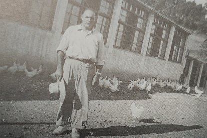 José Fernández Morán fue el iniciador de la industria avícola en Olleros de Alba. La imagen fue tomada en 1952 en la Granja San Miguel.