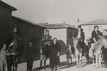 A lomos de caballerías iban los capuchinos y sus acompañantes a predicar misiones por los Oteros en los años 50. El padre Pacífico de Pobladura iba a predicar, el día de la foto, a San Pedro de los Oteros.