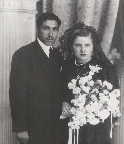 Ángel Puente y Nieves de la Puente el día de su boda en Villalboñe de la Sobarriba, en los lejanos años 50.