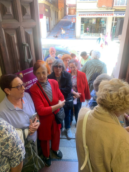 Desde las ocho y media de la mañana, decenas de mayores, algunos con bastón, aguardan una cola interminable para apuntarse en las actividades.