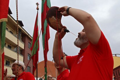 La explanada del Santuario se fue llenando poco a poco, de curiosos, de autoridades y de sonidos. Y de exhibiciones de euforia. Mástiles de pendones, sostenidos sin manos, bailes, casi imposibles al son de la dulzaina y del tamboril.