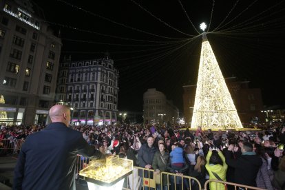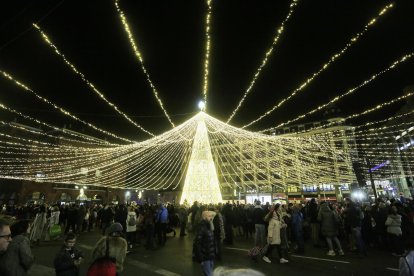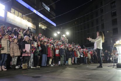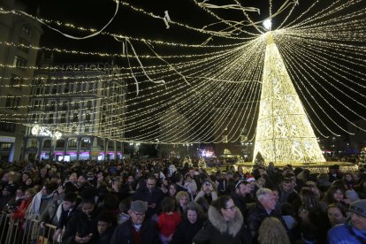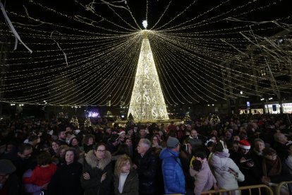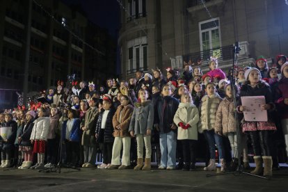 La luz de la Navidad se hizo este viernes por la tarde. Al reclamo de las voces blancas de los más de 250 niños de las aulas corales, la iluminación navideña de León prendió en la tarde de la despedida de noviembre para adelantar, Black Friday consumista mediante, la época del adviento. Queda todavía diciembre por medio hasta la Nochebuena, pero el camino para llegar allí lo alumbran los 1,7 millones de leds que cuelgan de los arcos repartidos por casi un centenar de calles de la ciudad, con el gran árbol de 18 metros trepado sobre la fuente de la plaza de Santo Domingo como guía.
